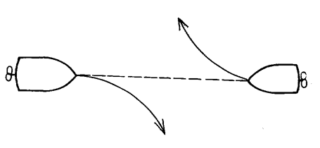 2隻の動力船(エンジンで動く船)が正面衝突しそうなときは、お互いに右転して避けなければなりません。