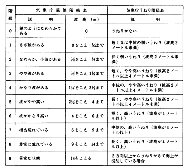 「中位」とは、波長100メートル以上200メートル未満(周期8.1秒から11.3秒まで)の程度をいう