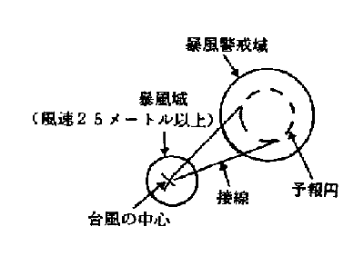暴風域を伴っていた台風が、次第に弱まり暴風警戒域がなくなると予想された場合、または「温帯低気圧」に変わると予想された場合。