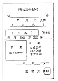 運輸省では、小型船舶操縦士の海技免状を自動車免許証とほぼ同じ大きさ(ラミネート加工後、縦9.5cm×横6.5cm)に改め平成5年11月1日から実施されました。(20トン以上の大型船の海技免状は現行のとおりです。)