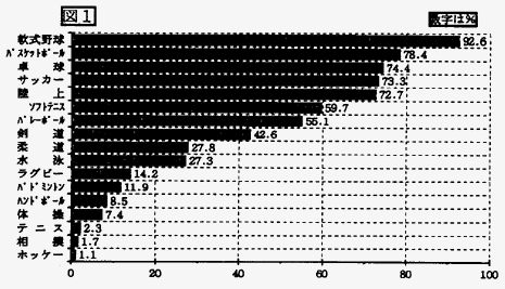 (1) 男女別種目別運動部活動設置状況(割合)図1は男子種目