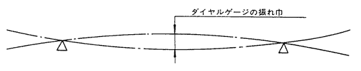 クランク軸、発電機などのロータ軸、中間軸、プロペラ軸など、動力伝動軸系に曲がりが発生すると、軸芯をうまく調整できなくなるばかりでなく、回転時に軸が振れるので、メタルなどの軸受荷重が大きくなり、油膜が切れて、焼付いたり、振動を発生する。これら軸の曲がり点検は、カップリング接手ボルトを外し、軸を手で回しながら、カップリング外周の振れをダイヤルゲージで測定し、0.1mm以上も振れる場合は、軸の曲がりを点検をしなければならない。軸の曲がり修正限度は、軸の両端部の軸受け部分をV形ブロックなどで支持し、下図のように中間部の振れをダイヤルゲージで測定する。軸の曲がりは、ダイヤルゲージの振れ巾の1/2であり、この寸法が軸の曲がり許容値を超える場合は、軸の曲がりを修正しなければならない。