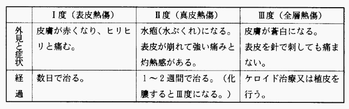 衣服に覆われた部分をやけどした場合は、衣服を無理にはがすと皮膚組織を痛めることとなるので、衣服を着せたままで水をかけて冷やし、水をかけながら注意して衣服を脱がさなければならない。