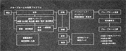 ぼ同じです。まず朝6時前後の起床に始まり、夜9時ごろの就寝に終わるまで、いわゆる家庭と同じような生活リハビリを主体とした1日の流れになっています。朝起きれば、洗面・更衣のあとの掃除、朝食の準備、エサをねだるチャペ(ペルシャ猫)の相手、朝食が終わればデイケアへ参加、夕方帰宅すると早速夕食の準備と掃除。夕食後はゆっくりおしゃべりを楽しんだ後、1人ずつ入浴と、ここでは簡単に記していますが、実際は利用者によって残存能力が異なるため、世話をしすぎず、時間年月をかけても個人個人に合った生活全般のリハビリをしていくことはかなりたいへんな内容です。この1日の流れ、共同生活のなかで老人たちには何度も出番があるし、また役割もあります。ケアワーカーは舵取りであるとともに黒子でもあるのです。
