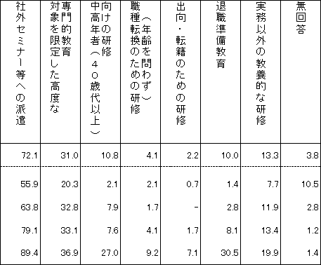 しかし、教育訓練の場合と同様に、ここでも規模による違いが大きい。キャリア面接は99人以