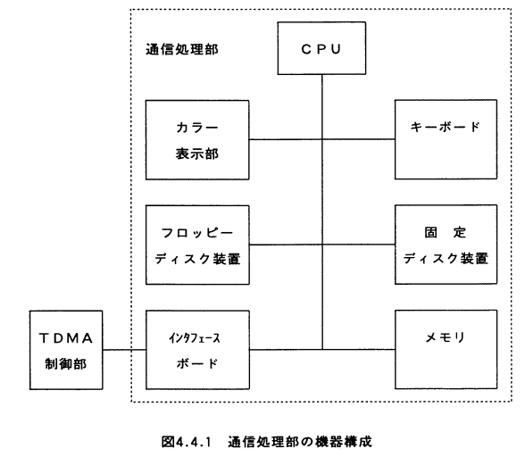 なお、通信処理部は、機上局及び地上局で同等の機能を有するものとし、起動時のモード設定により機上局及び地上局の指定を行うものとする。図4.4.1に通信処理部の機器構成図を示す。