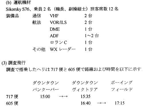 ダウンタウン・バンクーバーとダウンタウン・ヴィクトリア間には二つの国際空港(バンクーバーおよびヴィクトリア)があり、直行経路で飛行するとバンクーバー空港の上空を通過し、ヴィクトリア空港の東側を通ることになるが、ルートチャートを見る限り、飛行経路はバンクーバー空港を西側に迂回して海上を飛行する形でロランCにより設定されている。