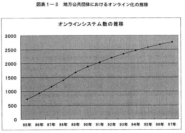 オンラインシステムの進展状況を地方公共団体におけるオンラインシステム数の推移で見ると、図表1-3のようになる。