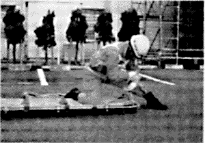 本部消防署では9月10日、全署員を対象とした署内救助大会を開催した。これは、現場活動技術の向上を図るとともに、活力ある職場づくりを目指し開催したもので、 一箇所吊り水平担架を作成するまでの正確さと、時間を競ったものである。