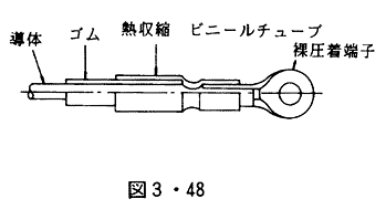 裸圧着端子を使用する場合は、圧着した金属部分には熱収縮ビニルチューブや粘着ビニルテープを用いて絶縁と防湿の処理を行うこと。