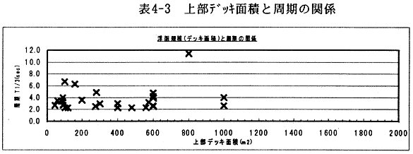 表4-4に示す既存の研究事例(海洋構造物の快適性、居住性について)を踏まえ、本研究で扱う浮体構造物の動揺制御の要因として波や風による動揺をいかに低減させるかを主な対象とする。種々の文献の調査の結果、1Hz以下の振動が動揺病(Motion Sickness Incidence)の発生の尺度とされていること、船舶の乗り心地及び海洋構造物の快適性の問題で1Hz以下の振動が動揺の問題として取り扱われていることより、1Hz以下の振動について的を絞ることとする。