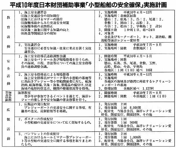 平成10年度日本財団補助事業「小型船舶の安全確保」実施計画
