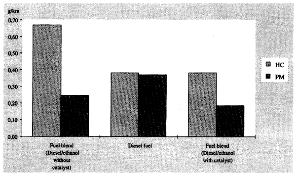 エタノールをディーゼル燃料と混合することは、エタノールをガソリンと混合することよりさらに複雑です。エタノールとディーゼル燃料の混合は通常、非常に安定しているとは言えず、2つの成分を混合させるためには乳化剤を必要とします。エタノールとディーゼルの混合物の現実の使用の経験は限られているため、KFBは1995年に実際のフリート・テストを実施しました。そのプロジェクトの目的は、既存のエンジンで使用することが可能で、MK1ディーゼルよりも排出ガスが少ないエタノールとディーゼルの混合からなる燃料を開発することでした。