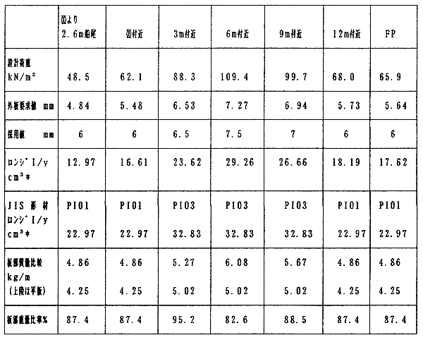 パイ形材を使用する場合は板部材と骨部材のそれぞれの所要寸法を満足させる必要がある。板部材の場合JISのPI材を使用するには、板の両端及び中央部以外テーパー部の応力を計算しなければならない。プログラムにはテーパー部の最大応力とその個所を表示出来るようにしてあるから,これを使えば簡単である。