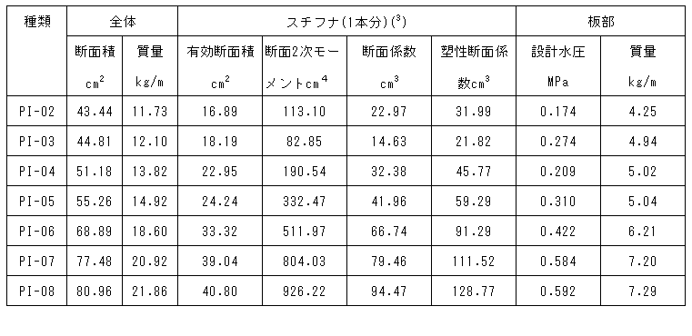 (2)形材の断面性能は,表2のとおりとする。