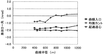 図61 輪軸操舵角、台車ボギー角と車体ヨー角(試番:R-3)