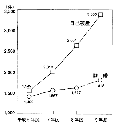 平成9年度の法的助言は7,607件で、示談交渉等の援助は344件でした。示談交渉等の援助の手続きは裁判援助に準じてなされています。