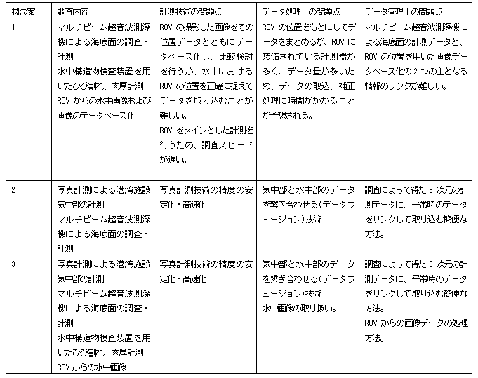 ここで、調査ユニット概念案を選定するにあたり、それぞれの技術課題に注目し、評価を加える。