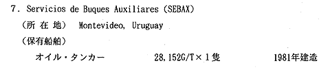 同社は、ウルグアイ海軍の管轄下にあり、保有船は97年現在、唯一のウルグアイ国籍船である。