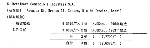 同社は、Mansur一族によって支配されている。乾貨物と穀物をブラジル国内およびアル ゼンチン向けに運搬している。 同社は、Metalnave Groupに所有されている海運会社である。 同社は、Group Lorebtzenの所有である。