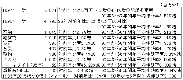 第1節 世界の海上荷動き量 Fearnleys 「Revie 96, 97」「World Bulk Trade 97」