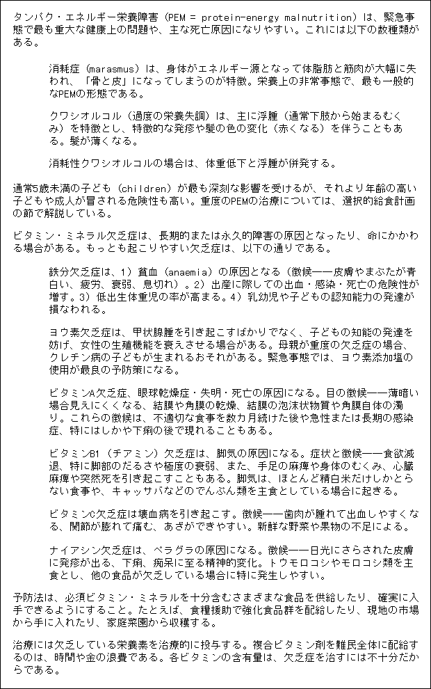 付表3 緊急事態での主な栄養欠乏障害15 15 資料 The Management of Nutritional Emergencies in Large Populations, WHO, Geneva, 1999より。