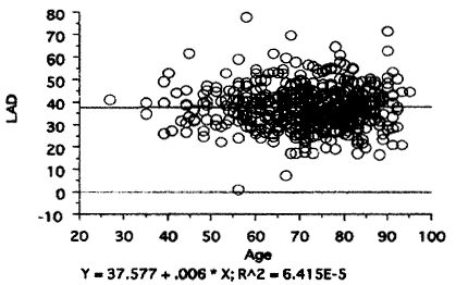 【図-4】 全施設の年令と経胸壁心エコーデータの相関関係