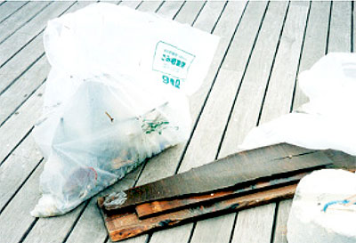 実施内容 エンジン付ゴムボートや水上バイク等を使ってイベント会場周辺の水面清掃を行い、来場者へ海上に漂うゴミの現状を訴えました。