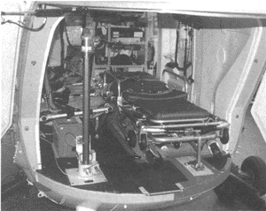 ロールイン・ストレッチャーは救急車と同様のものをヘリコプターに積載できる装備としました。したがいまして、救急車からヘリコプターにそのまま載せ替えできますので、患者への負担が軽減されます。
