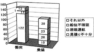 漁船の海難は、他の用途の船舶に比べ衝突・乗揚げの占める割合が高いことが特徴といえます。