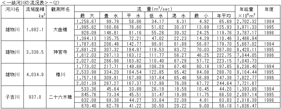 「流量年表」 日本河川協会 平成6年〜平成8年度版