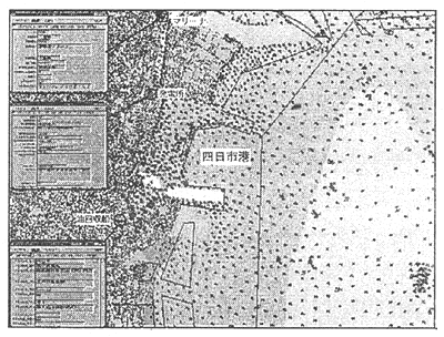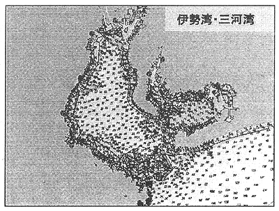 防災を直接目標にしたものではなく地図情報そのものであるが、地理情報システム(GIS)というのがある。地図も「紙に印刷されたもの」という概念から離れつつあり、「電子地図」という形を取りつつある。図18にGISの定義を地理情報システム学会のポスターから引用しておく。「電子地図」の一例は、広く使われているカーナビゲーションで、一般の方にも馴染みのあるものであろう。先に宮本氏から紹介された「電子海図」もこのGISの一部を構成している。海洋情報管理室のリスクマップも、GIS(電子海図)上で作業を進めて行く予定であるが、その例を伊勢湾・三河湾について図19に示す。ここでは、電子海図の上に漁業区域、ヨットハーバーや漁港、油対策として油回収船やオイルヘンスの所在地等を書き加えたものである。