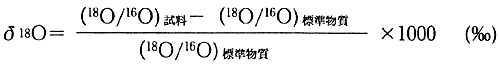 注2. 酸素と水素の同位体分別酸素と水素の同位体組成は、通常それぞれ次式で与えられるδ18OとδDで表現する。