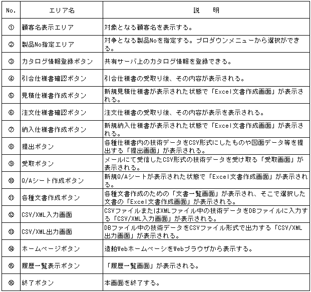 表9.5 クライアント操作画面(メーカ)エリア詳細