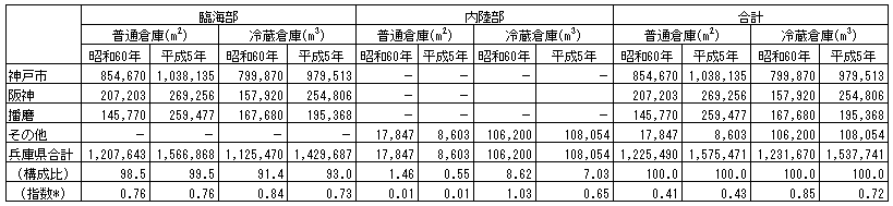 (3) その他のインフラ状況 1]倉庫の立地状況 倉庫面積は昭和60年から平成5年にかけて、臨海部、内陸部とも増加している。しかしながら、最近、ヒアリング等の結果から、特に神戸の臨海部等では低利用率の倉庫がかなり拡がり、事業者にとってコスト競争が厳しくなっている。