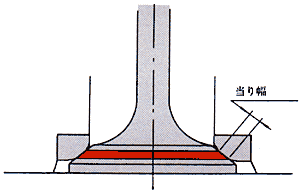 弁と弁座は2・54図のように弁のシート面中央部に弁座のシート面が当り幅1.5〜2.0mm程度で当るようにする。弁シートの上端や下端部に弁座シート面が当る場合は弁座をカッタで切削修正する。(2・55図参照)
