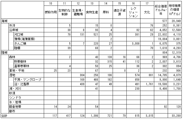 出典:Robert Costanza他(1997)The value of the world's ecosystem services and natural capital. Nature Vol.387より作成