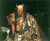 Now a spectacular dance entitled “Fushiki-Hobashiraokoshi-Iwaiuta,”the highlight of this play, is performed on the open-air stage.