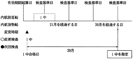 (注) 変更前に18条第2項の表第3号中欄に規定する第1種中間検査を受けている船舶についての同項の規定の適用については、当該第1種中間検査を同表第6号中欄に規定する第1種中間検査を同条第6項の規定によりその時期を繰り上げて受けたとみなされる。