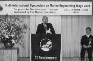 最後に、ISME TOKY0 2000の行事委員長 中島賢一郎氏より、「論文のプレゼンテーション以外にも、マリンエンジニアリング関係の展示会が開設されていること、2つのテクニカルツアー及び2つのレディスプログラムが用意されていることのアナウンスと共に、開会式の閉会」が宣言された(写真8)。