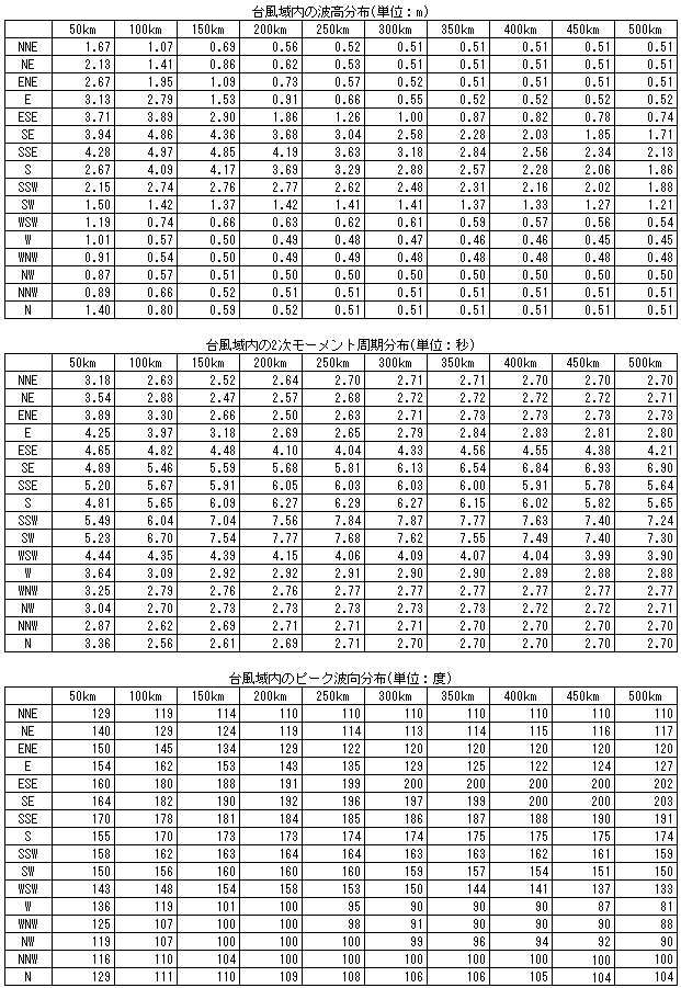 表3 台風域内の波浪諸元(中心気圧:995hPa、進行速度:北へ40km/h)