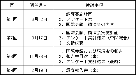 検討委員会は計4回開催した。各々の委員会の開催日と検討事項は以下の通りである。