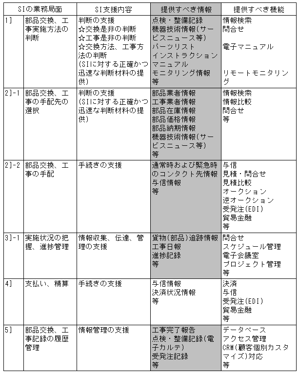 (3) サービス実験用情報コンテンツの作成 サービス実験用の情報コンテンツは、アフターサービス実態調査結果を基に整理された表3-1の網掛け部分から選択された。