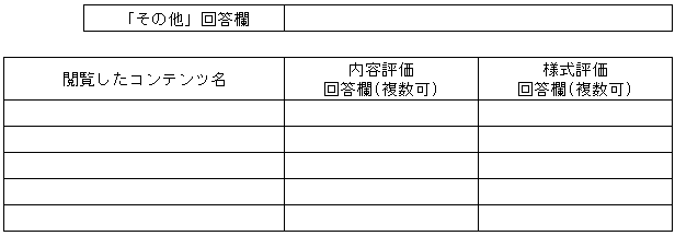 各々の情報コンテンツ名をご記入頂くと共に、内容、様式(フォーマット)についての評価を、以下から選択してください。