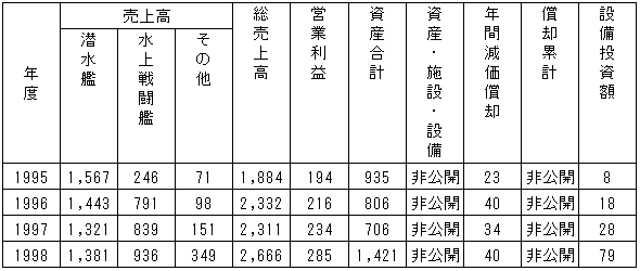ジェネラル・ダイナミクス・マリン部門財務データ(FY1995- )