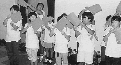 ドッジボールが終わるとすぐに、港まつりにいかなければならないということだったので、すぐにハッピに着がえ、つかれていたのにもかかわらず、大じゃ山を一生けん命ひいていきました。