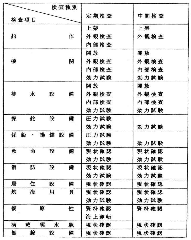 [3] 主機、補助機関、排気タービン過給機、クランク軸、プロペラ、プロペラ軸、プロペラ軸系のクラッチ、流体継手、500馬力(367.5kW)以上の機関に用いられる弾性継手、逆転機、減速機の取替え修理は、予備検査合格品であっても臨時検査の対象となる。それ以外の部品の交換、例えばピストン、シリンダヘッド等で予備検査合格品の取替え修理は臨時検査の対象にはならない。