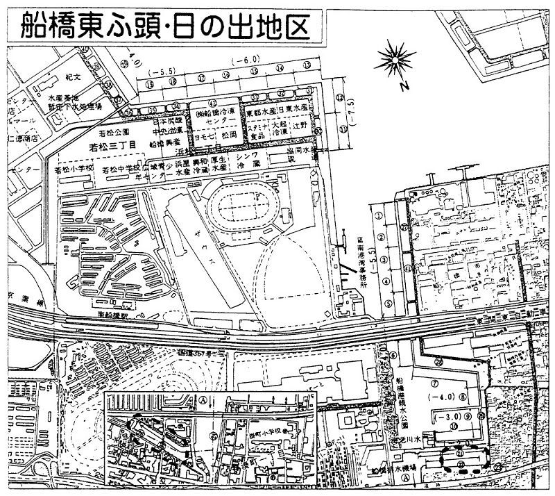 図3-3 船橋東ふ頭船溜及び海老川河口船溜位置図