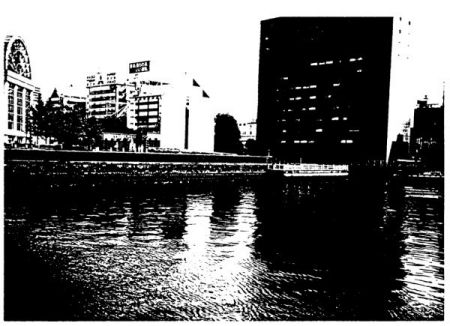 ポケットパークを介して大型のオフィスに隣接しており、直接水辺までアプローチできる。