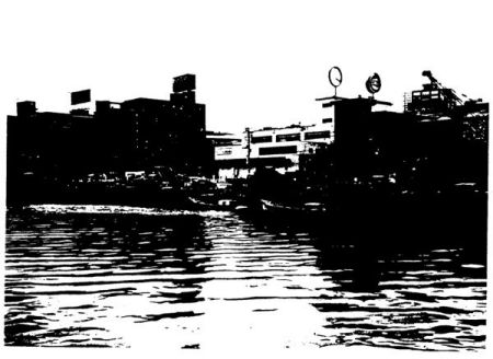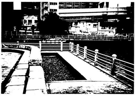 写真3-16の岸沿いに突き出た部分は、運河にアクセスし易いような護岸が写真3-17に示すように整備されている。
